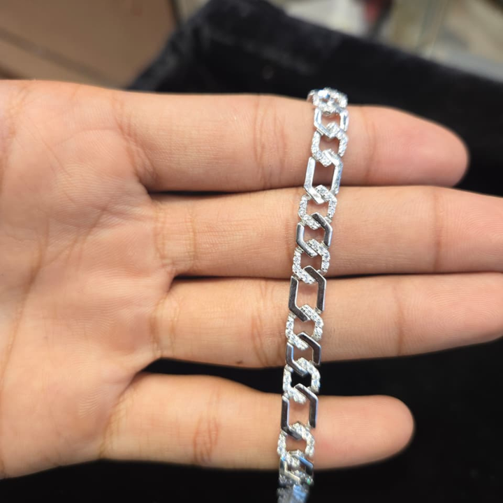 The Silver-Tone Alternating Link Iced Cuban Bracelet features a distinctive pattern of alternating links, each encrusted with shimmering stones to create an iced effect. This design combines classic Cuban link durability with modern sparkle, delivering a bold yet refined accessory. Ideal for those seeking a statement piece that balances strength and elegance, it complements both casual and formal looks with lasting shine and comfort.